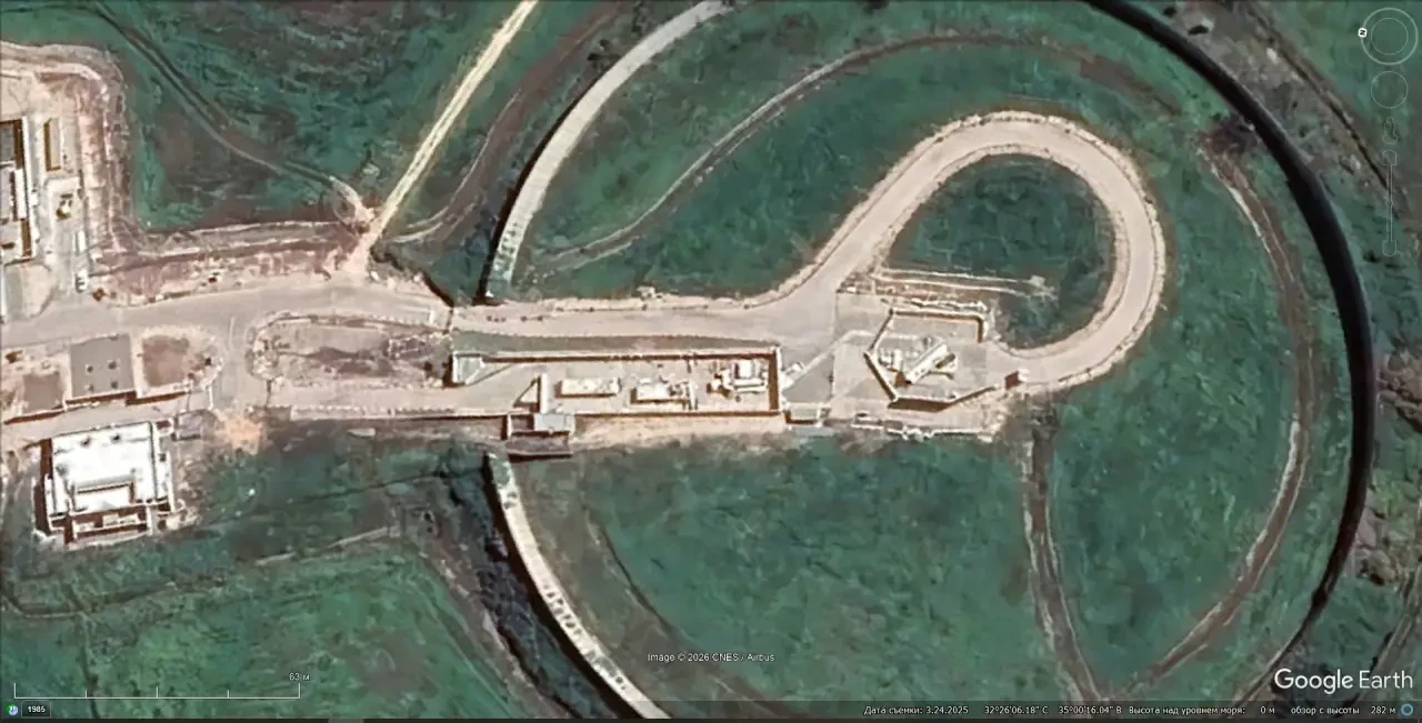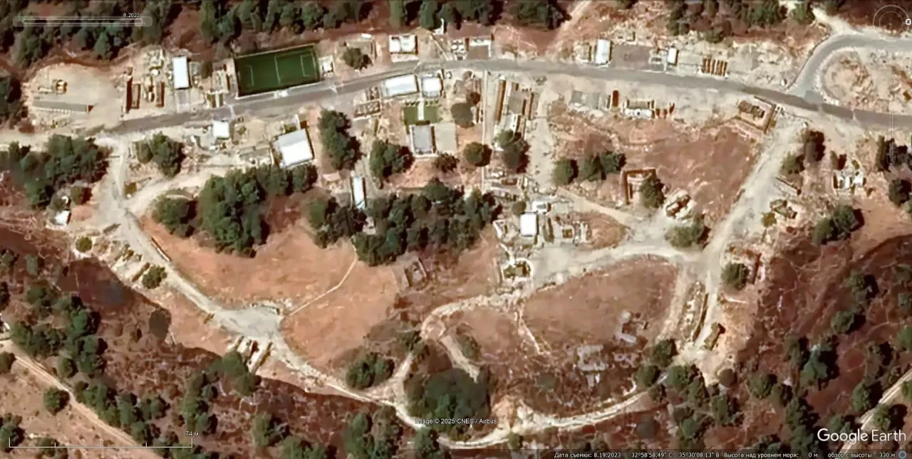 Cпутниковый cнимoк Googlе Еаrth: элементы системы Iron Dome на территории Военного училища противовоздушной обороны Бисла. Снимок сделан в ноябре 2024 года