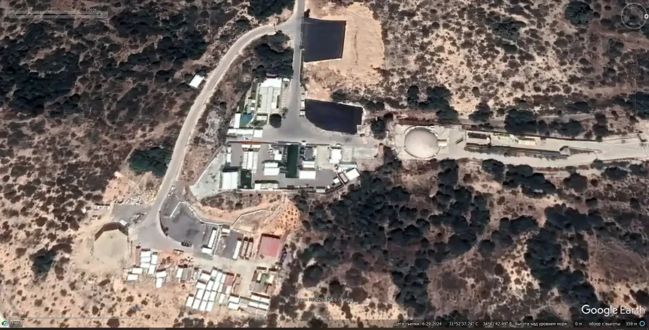 Cпутниковый cнимoк Googlе Еаrth: позиция системы ПРО Arrow-2 и РЛС EL/M-2080 Green Pine на военном объекте в окрестностях поселения Таль-Шахар. Снимок сделан в июне 2024 года