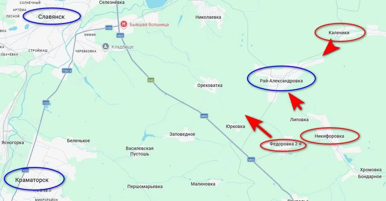 Российские войска продолжают с боями продвигаться к Славянску сразу с нескольких направлений. Наступление идет с востока от Северска, здесь наши войска взяли 17 марта село Каленики, от которого до Славянска по прямой меньше 14 км. Также наступление идет с юго-востока, фактически вдоль трассы Артемовск — Славянск. Тут наши бойцы взяли Федоровку Вторую неделю назад и сегодня освободили соседнюю Никифоровку.