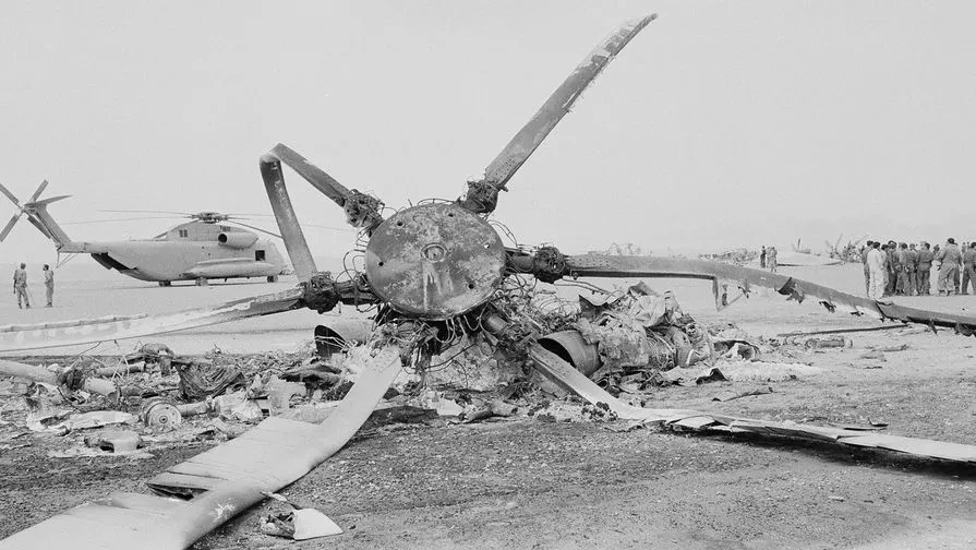 Финал был катастрофическим: во время дозаправки один из вертолетов врезался в самолет-заправщик, погибли восемь американских солдат. Миссию отменили. Тела товарищей, технику и секретные материалы пришлось бросить.