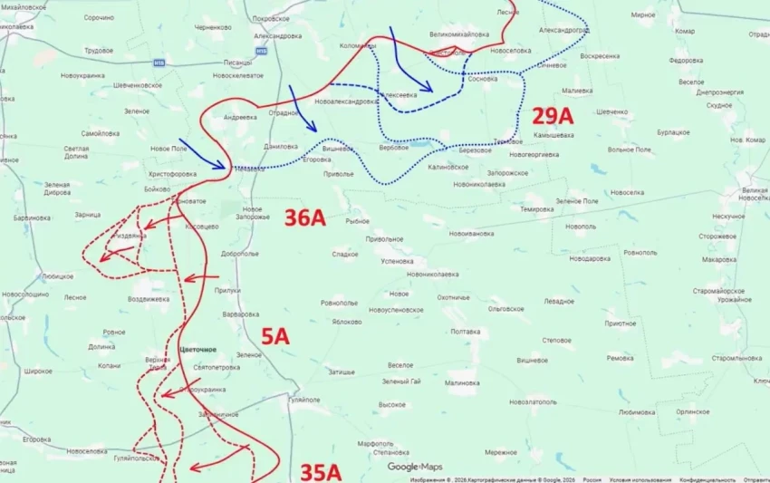 Сообщается, что российским военным удалось значительно укрепить позиции южнее Рай-Александровки. По данным источников, войска РФ зачистили «карман» в районе населенных пунктов Приволье и Голубовка.