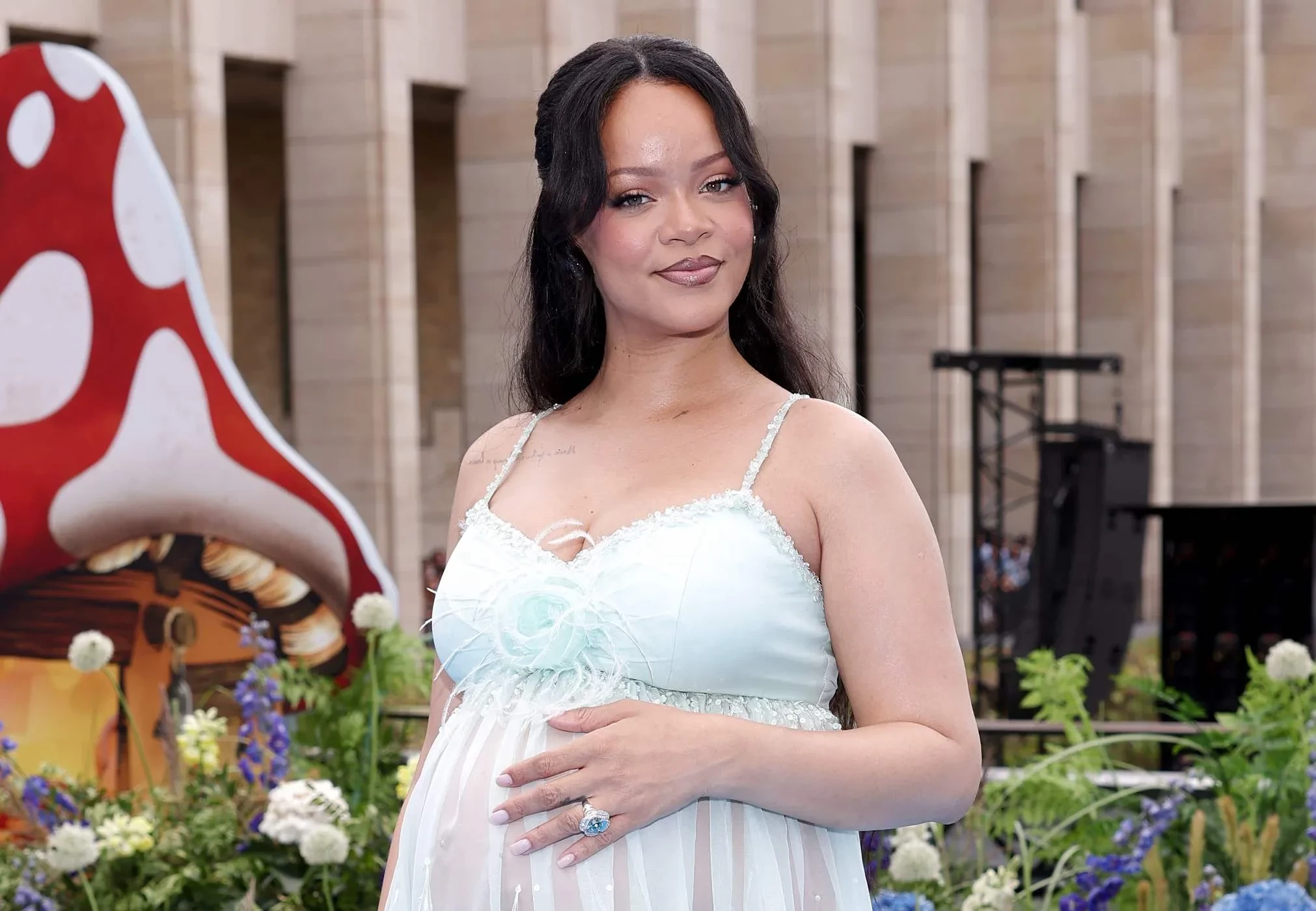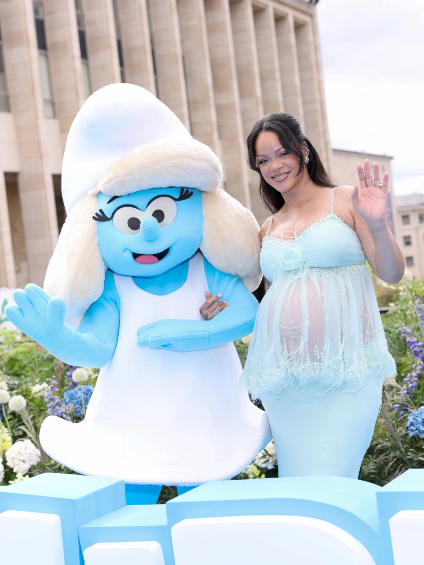 37-летняя Рианна, которая сейчас ждёт ребёнка от своего возлюбленного A$AP Rocky, посетила премьеру фильма "Смурфики в кино" в Брюсселе.