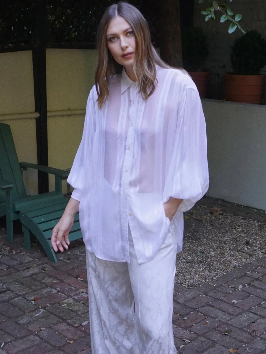 38-летняя теннисистка пришла на ивент в Нью-Йорке в прозрачной белой блузе и брюках Stella McCartney. Мария дополнила образ укладкой с распущенными волосами и обувью на каблуке. На одном из снимков, который Шарапова назвала своим любимым, она позирует в обнимку с сыном.