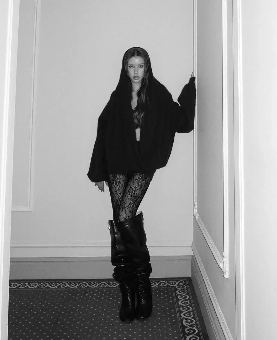 16-летняя Анна Пересильд снялась в кружевных колготках и мини
