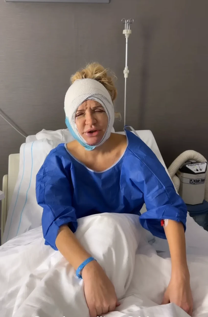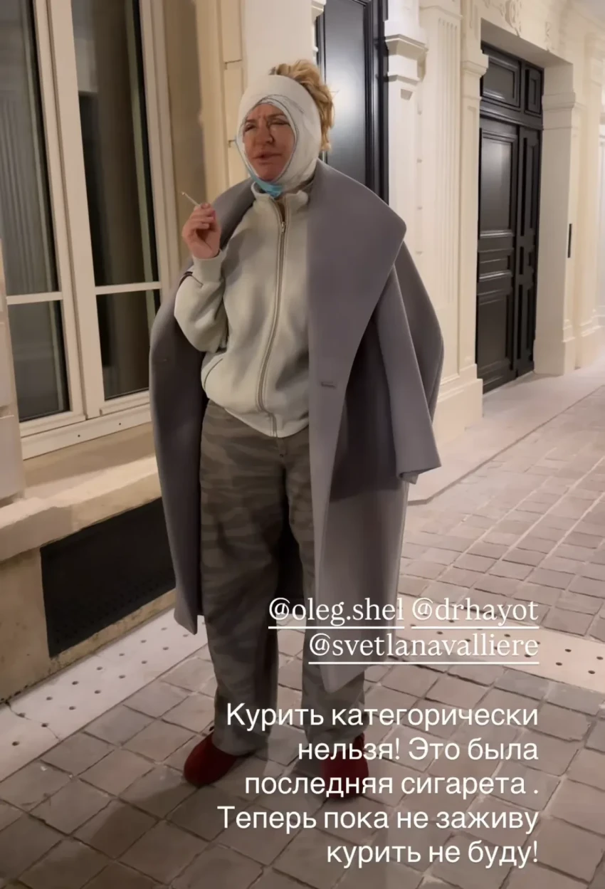 Виктория Шелягова, которая неделю назад сделала подтяжку лица в Париже, показала в соцсетях, как проходит восстановление после операции.