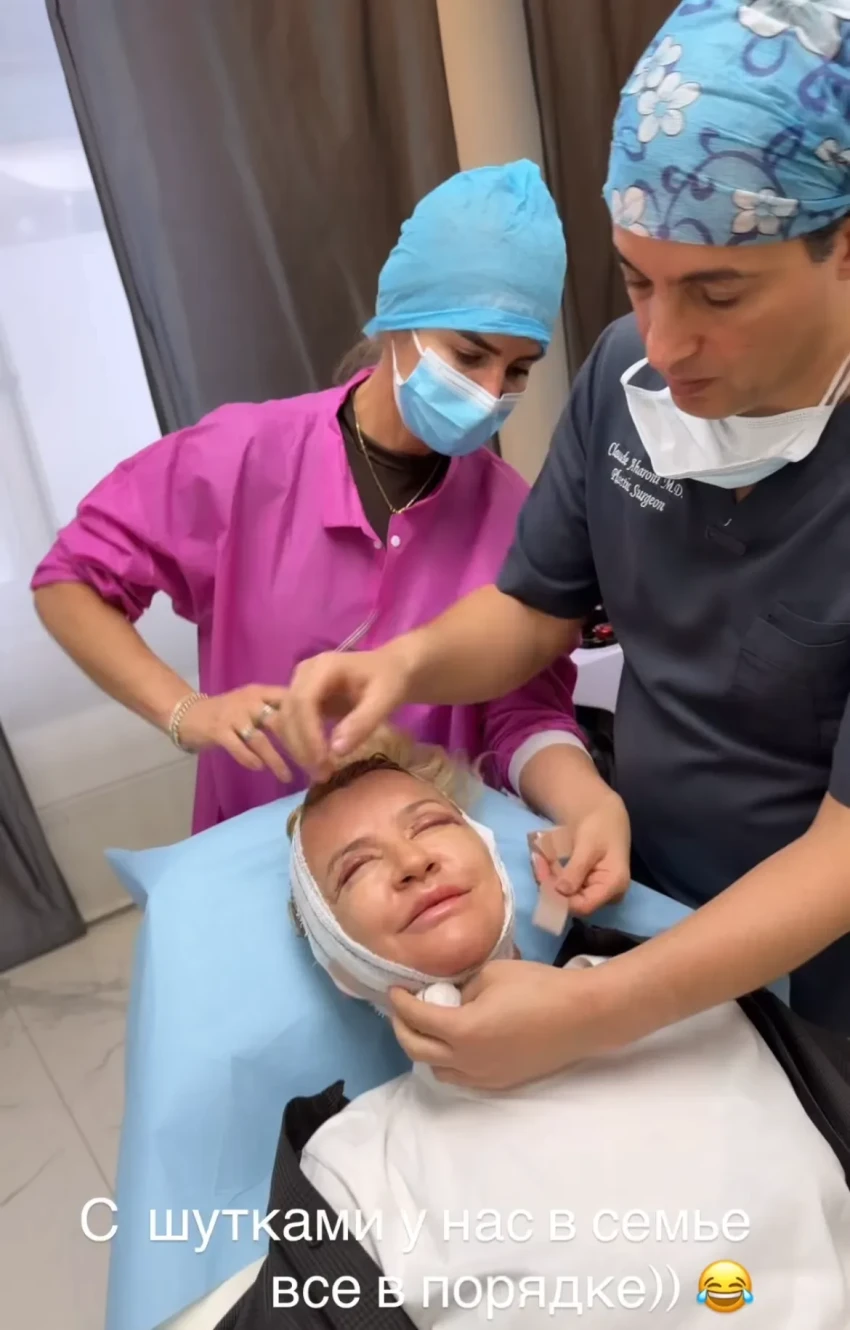 52-летняя светская львица провела в клинике пару дней, где за ней ухаживали персонал и муж, совладелец компании "Ритуал-сервиc" Олег Шелягов. Он помогал мазать швы и развлекал жену шутками.