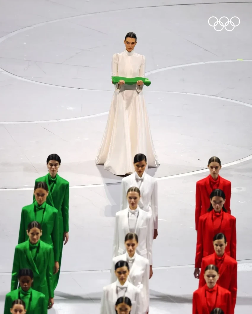 Отдельный блок организаторы посвятили памяти культового итальянского дизайнера Джорджо Армани, скончавшегося осенью прошлого года. На стадионе прошло настоящее дефиле в его нарядах зелёных, белых и красных цветов. При этом позади моделей торжественно вышагивала не кто иная, как возлюбленная Леонардо ДиКаприо Виттория Черетти, которой выпала честь нести национальный флаг. 27-летняя топ-модель была одета в эксклюзивное платье от Armani Privé, напоминающее наряд Карлы Бруни. Последняя 20 лет назад удостоилась этой же привилегии на зимних Олимпийских играх в Турине.