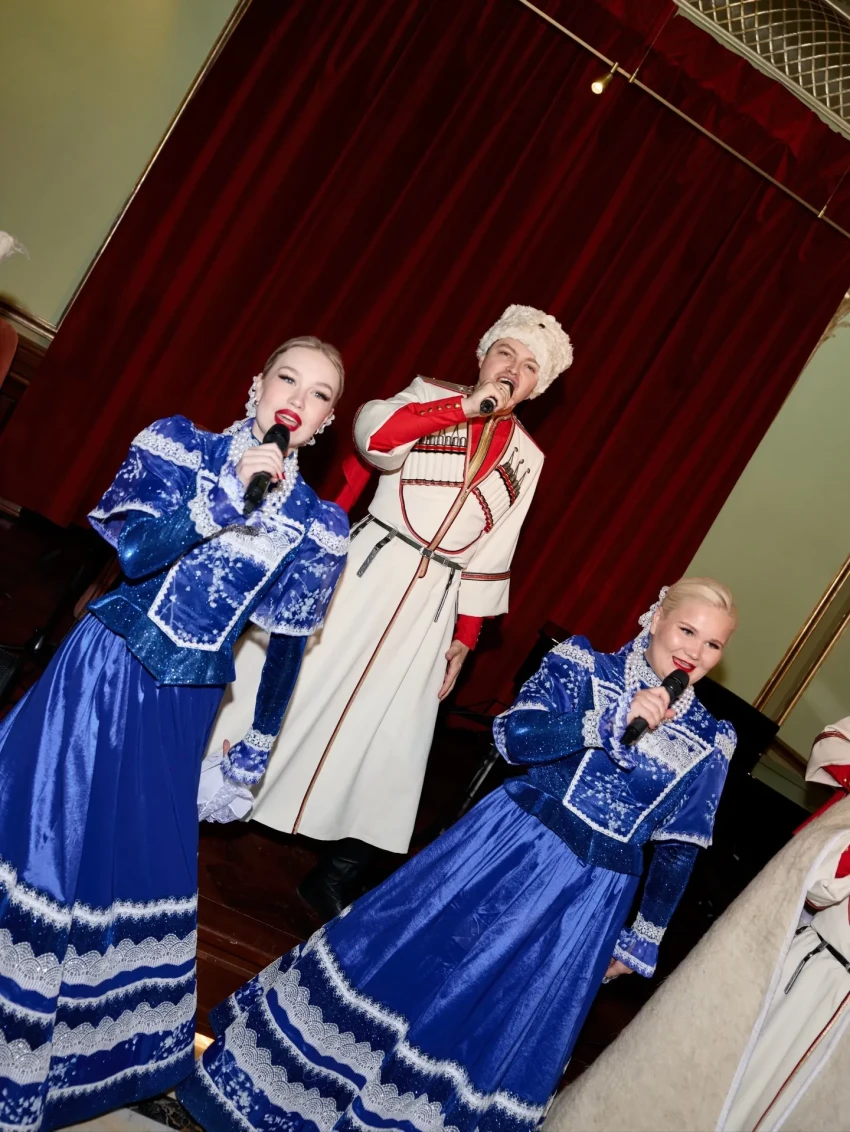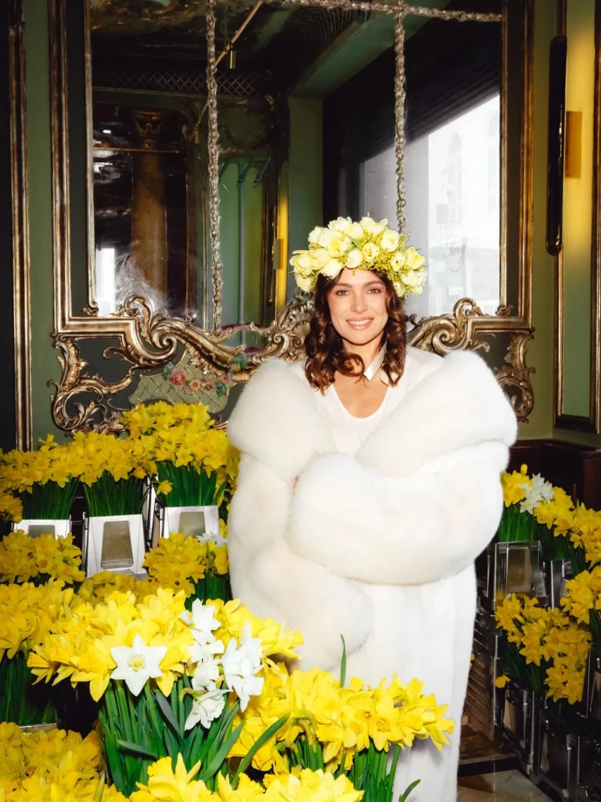 Праздничным дресс-кодом стали образы в жёлто-белой цветовой гамме, напоминающей о нарциссах, которыми было украшено всё пространство. Столы ломились от угощений: наряду с традиционными блинами и оладьями присутствующих угощали пирожками с мясом и капустой, соленьями, шоколадными конфетами и петушками на палочке, которые предлагали запивать травяным чаем и настойками.