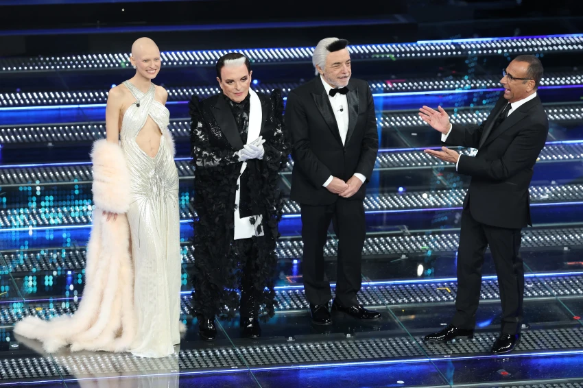 Ирина Шейк стала соведущей на 76-м ежегодном музыкальном фестивале Sanremo в Италии. 40-летняя супермодель вышла на сцену в четырёх разных образах и с бриллиантом в зубах.