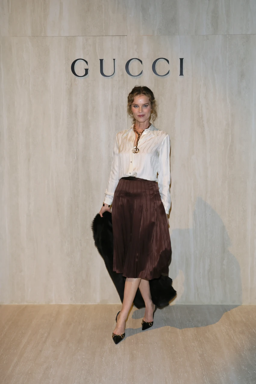 Деми Мурhttps://t.me/spletnik2006/49603Не смогла пропустить показ и давняя подруга Демны, 59-летняя Рената Литвинова. Актриса пришла в сером платье-накидке с отделкой из новой коллекции, а её 24-летняя дочь Ульяна Добровская выбрала красное платье-пальто (его же надела Донателла Версаче) и чёрную мини-юбку. 27-летняя первая ракетка мира Арина Соболенко, которая в начале года стала лицом Gucci, позировала фотографам в пиджаке в полоску, чёрной водолазке и классических брюках.