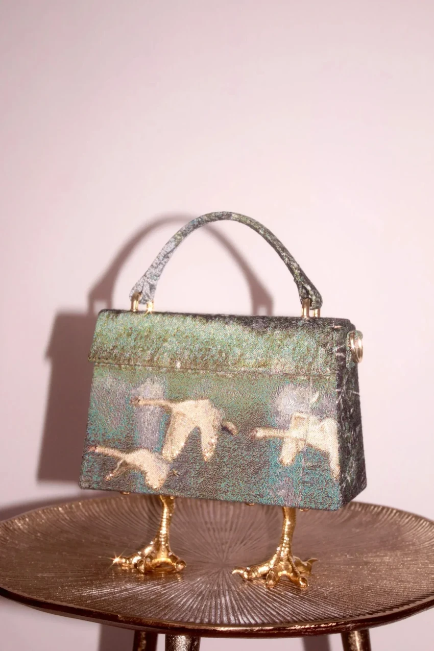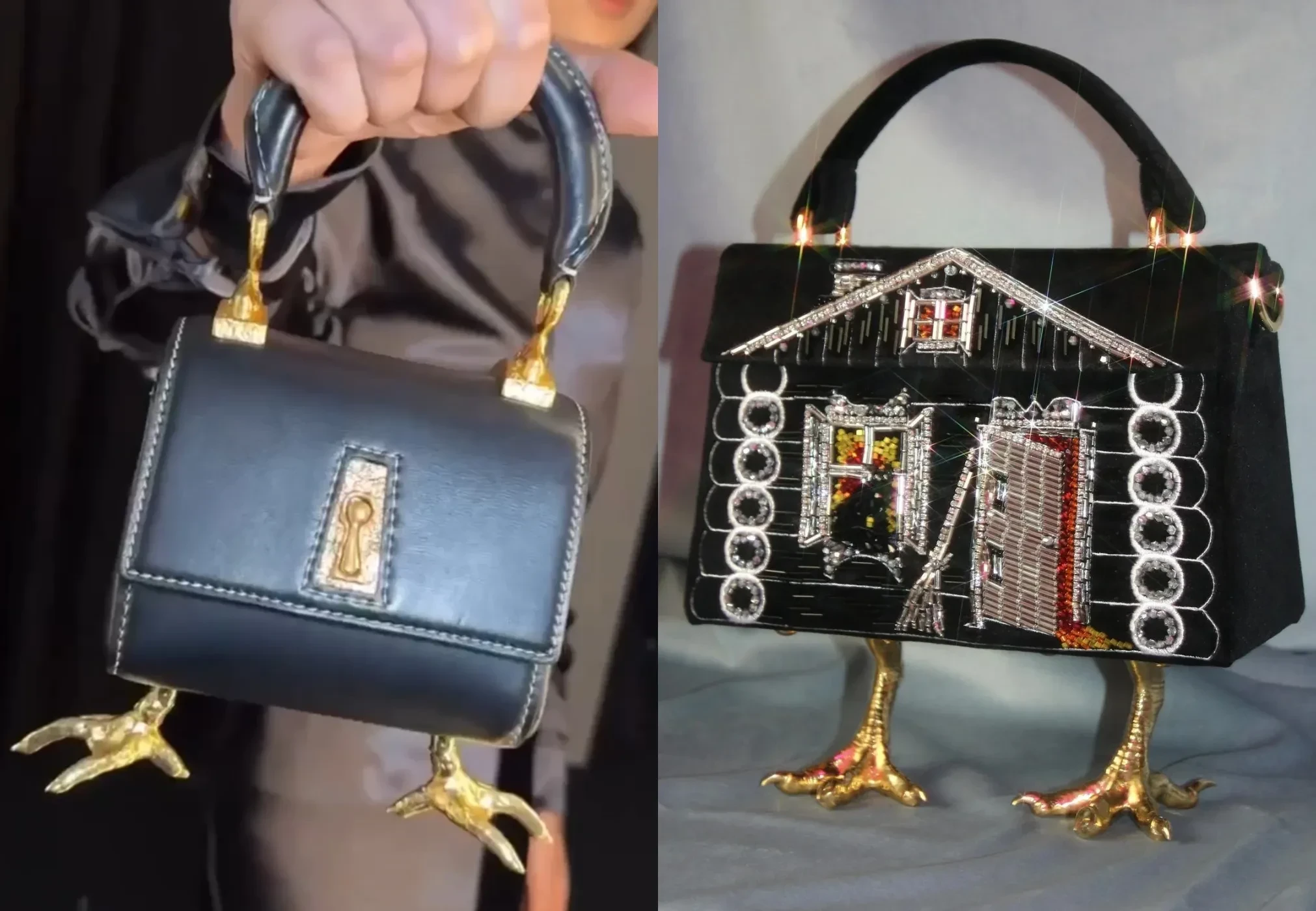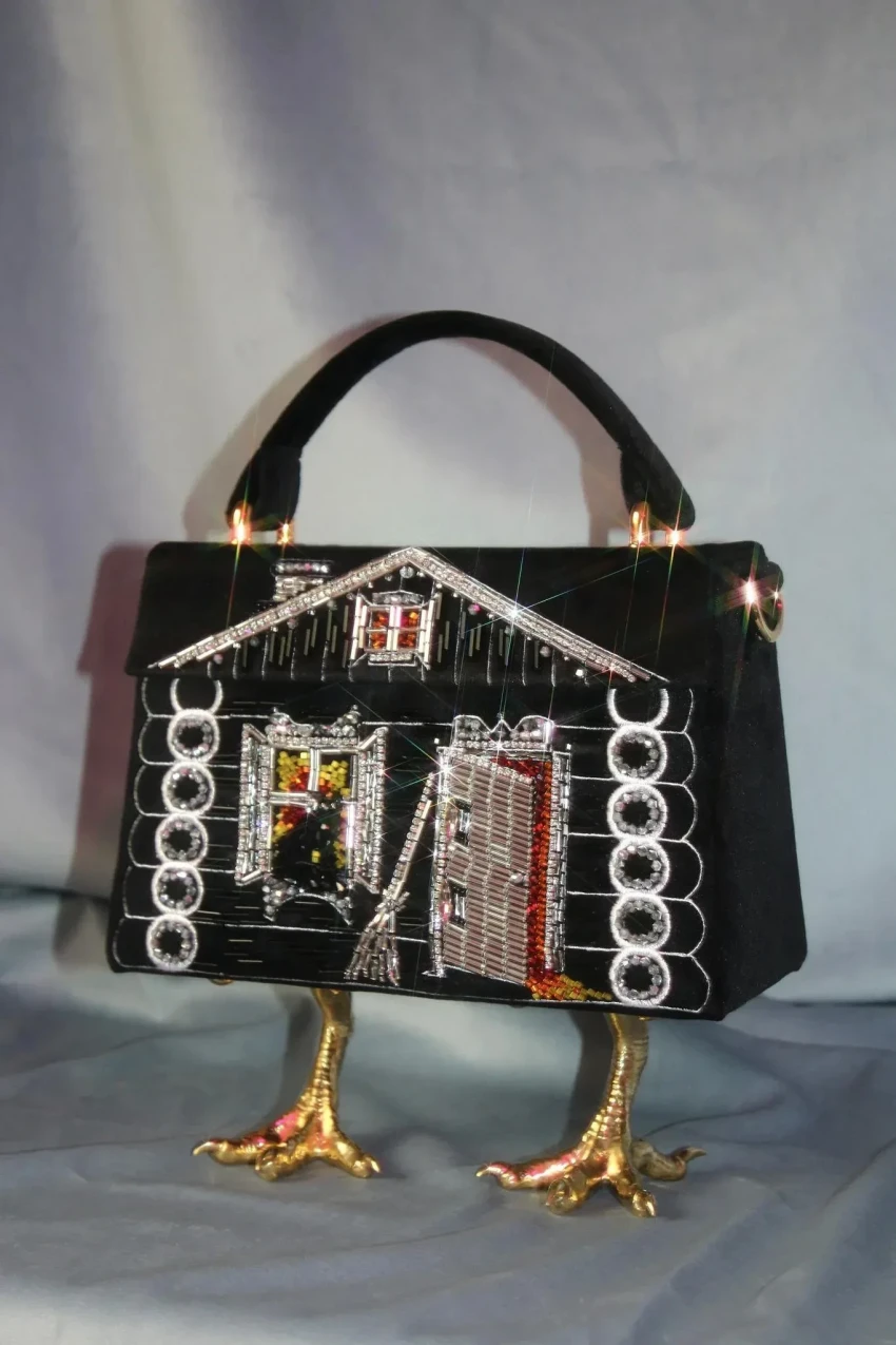 Сумка SchiaparelliПри этом Эмбройдери воплотила эту идею ещё в 2023 году. С тех пор дизайнер, который черпает вдохновение из русского фольклора, создала немало других изделий, отсылающих к сказкам и былинам, однако те самые "сумки на курьих ножках" стали её визитной карточкой.
