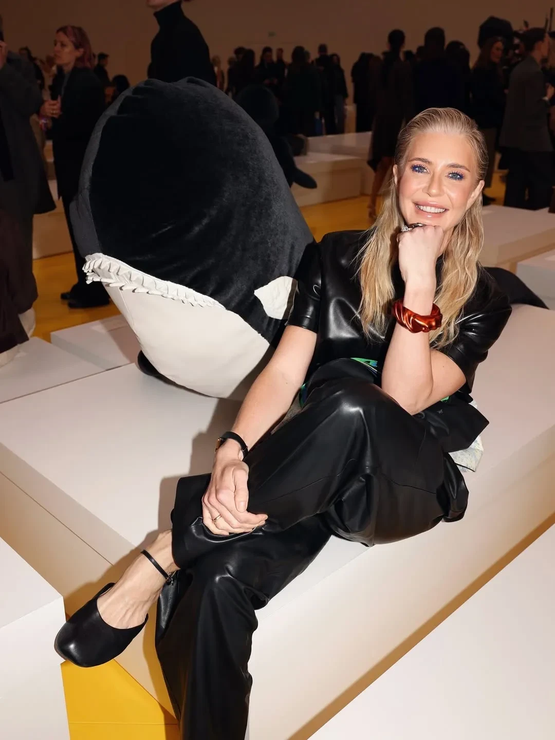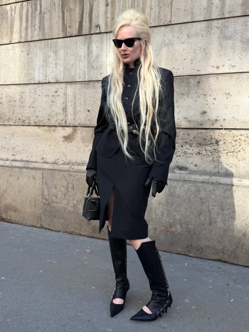 Блогерши Диана Коркунова и Алла Брулетова сходили на вечеринку, а светская львица Дарья Лисиченко в костюме из кожи посетила показ Loewe и ужин Schiaparelli. Тем временем Ксения Чилингарова пришла на шоу Chanel в твидовом костюме с мини-юбкой.