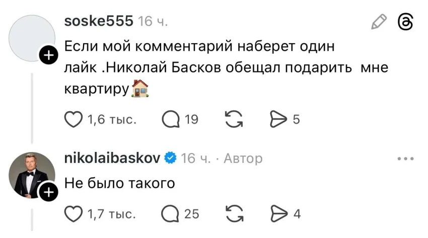 Всё началось с ветки Баскова, который непринужденно поздоровался и поинтересовался, "что интересного тут происходит". Реакция пользователей не заставила себя ждать, и под его сообщением быстро появилось несколько тысяч комментариев. Люди иронично отметили, что "беда не приходит одна", и появление "старой гвардии" в лице других старожил российского шоу-бизнеса — лишь вопрос времени. Так и случилось.
