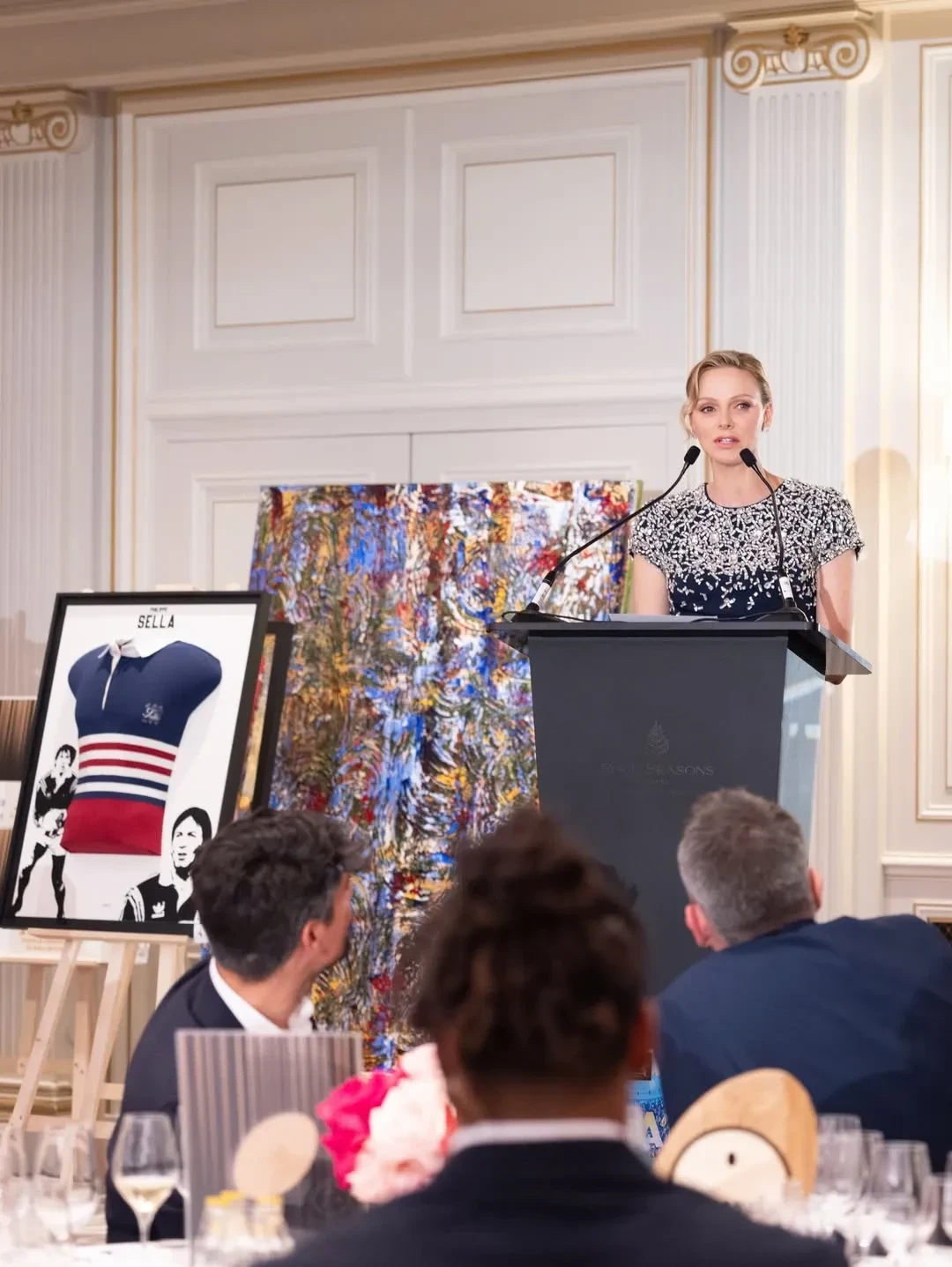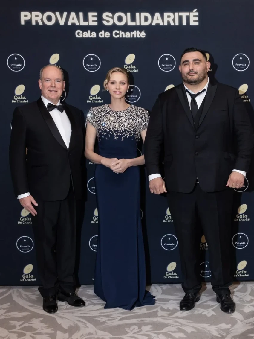 48-летняя княгиня появилась на мероприятии в синем платье в пол с серебристой вышивкой, а 68-летний князь Альбер надел классический чёрный смокинг. Гала-вечер организован национальным профсоюзом профессиональных игроков в регби в поддержку спортсменов, столкнувшихся с жизненными трудностями: травмами, финансовыми проблемами или необходимостью смены профессии после завершения карьеры.
