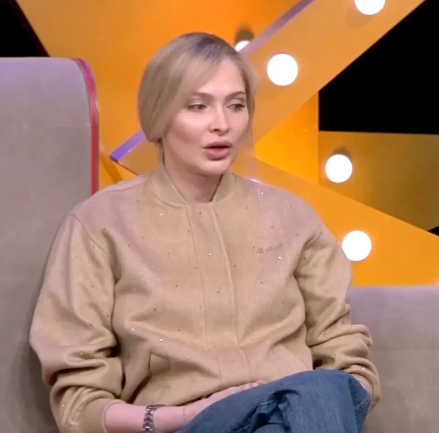 Шишкова появилась в студии в бежевом бомбере, с минимумом макияжа и с убранными волосами. Она рассказала, что её 12-летняя дочь Алиса, которую модель родила в 21 год от рэпера Тимати, "строит папу" и доводит мать до панических атак. Модель пожаловалась, что несколько дней не может сделать маникюр, потому что по пути в салон Алиса звонит и требует, чтобы мать вернулась домой. Кроме того, дочь Тимати, воспитанием которой по большей части занимается его мать Симона Юнусова, также доводит и няню. Например, она может устроить истерику из-за того, что няня неправильно приготовила для неё чай. Алёна назвала себя неопытной матерью, которой всего 33 года, поэтому воспитание дочери она доверяет её бабушке. Также она отметила, что у Алисы уже есть своя квартира в том же ЖК, где живут мать, бабушка и отец, поэтому она ночует, где захочет.