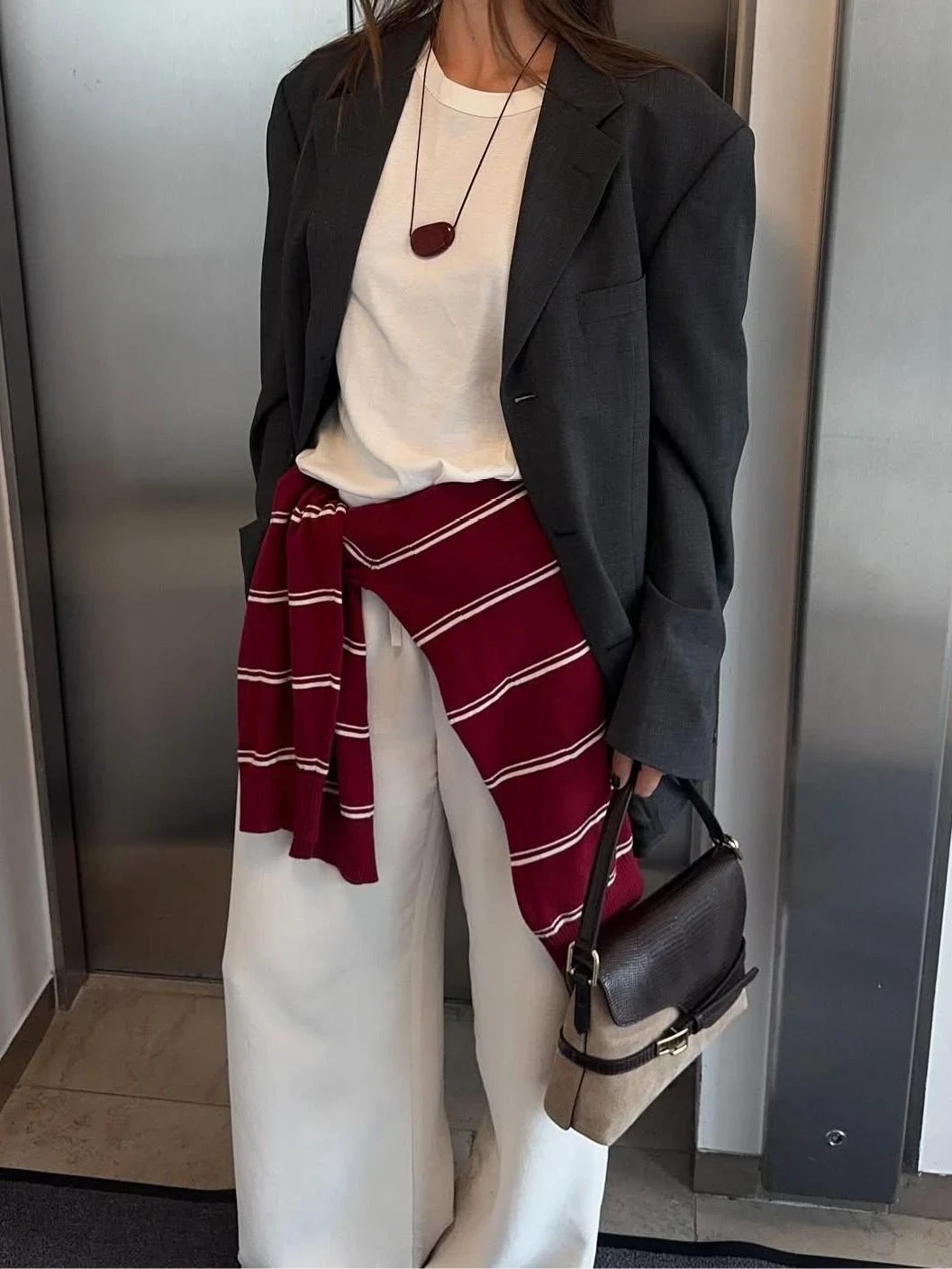 Белые брюки + замша цвета кэмел