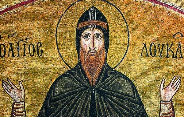 Лука стал иноком в 14 лет, а в более зрелом возрасте обосновался у подножия горы Геликон, где собрал свою общину. Здесь же началось строительство храма святой Варвары, на месте которого впоследствии возникло святое место.
