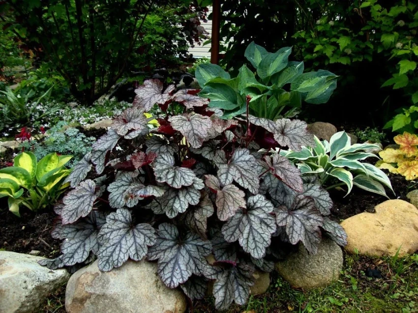 Лучше всего гейхера растет в полутени, защищенной от палящего солнца. Это отличный вариант для оформления клумб и тенистых уголков сада.